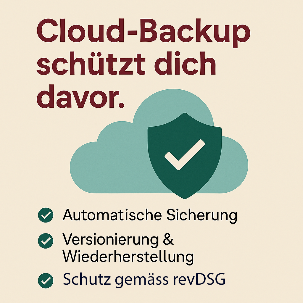 Gerade in Zeiten von steigenden Cyberangriffen und strengen Datenschutzvorgaben (Stichwort revDSG) gehört ein Cloud-Backup zur Pflichtausstattung jedes verantwortungsvoll geführten Unternehmens.