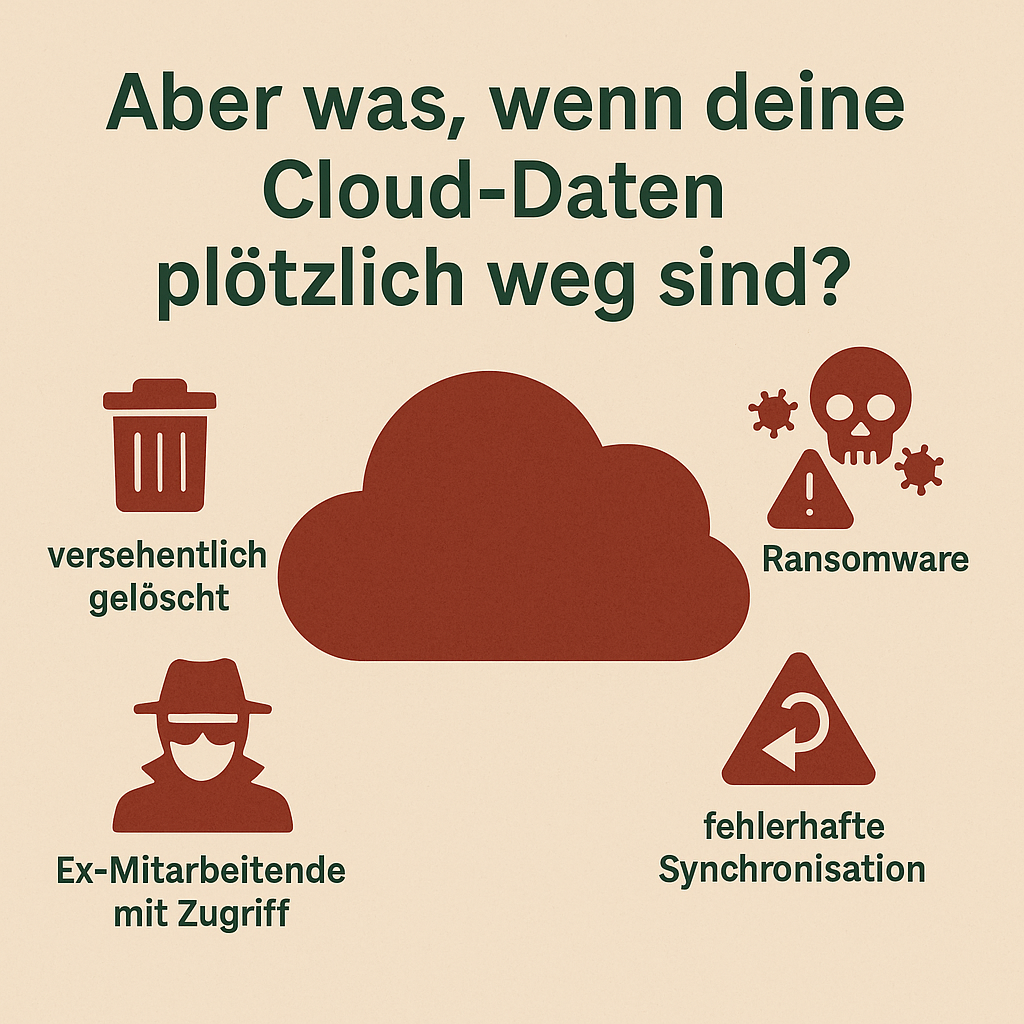Viele Unternehmen und Privatpersonen gehen davon aus, dass ihre Daten in der Cloud automatisch sicher sind. Schliesslich wird ja alles synchronisiert, und grosse Anbieter wie Microsoft, Google oder Dropbox investieren viel in die Ausfallsicherheit ihrer Systeme.
